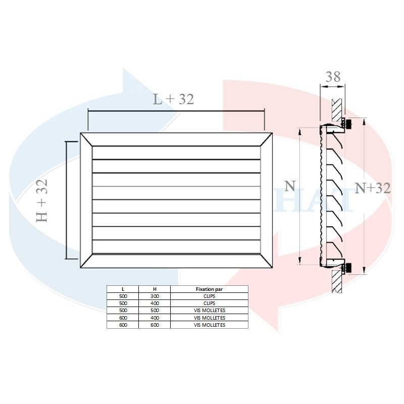 Grille de repriseà ailettes fixes,...