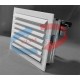 Grille à ailettes courbes avec registre motorisé 220v, avec une rangée d’ailettes horizontales mobiles orientables dans une direction, fabriquée avec des profils en aluminium extrudé et anodisé avec registre de débit en aluminium motorisé en 220v.